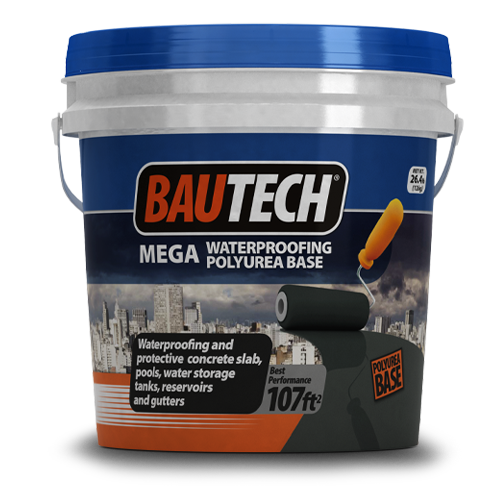 Elastic waterproofing membrane polyurea based, bi-component, with strength stretching for large slabs, reservoirs, industrial tanks and floors with traffic. Withstands chemical exposures. Can be applied manually.